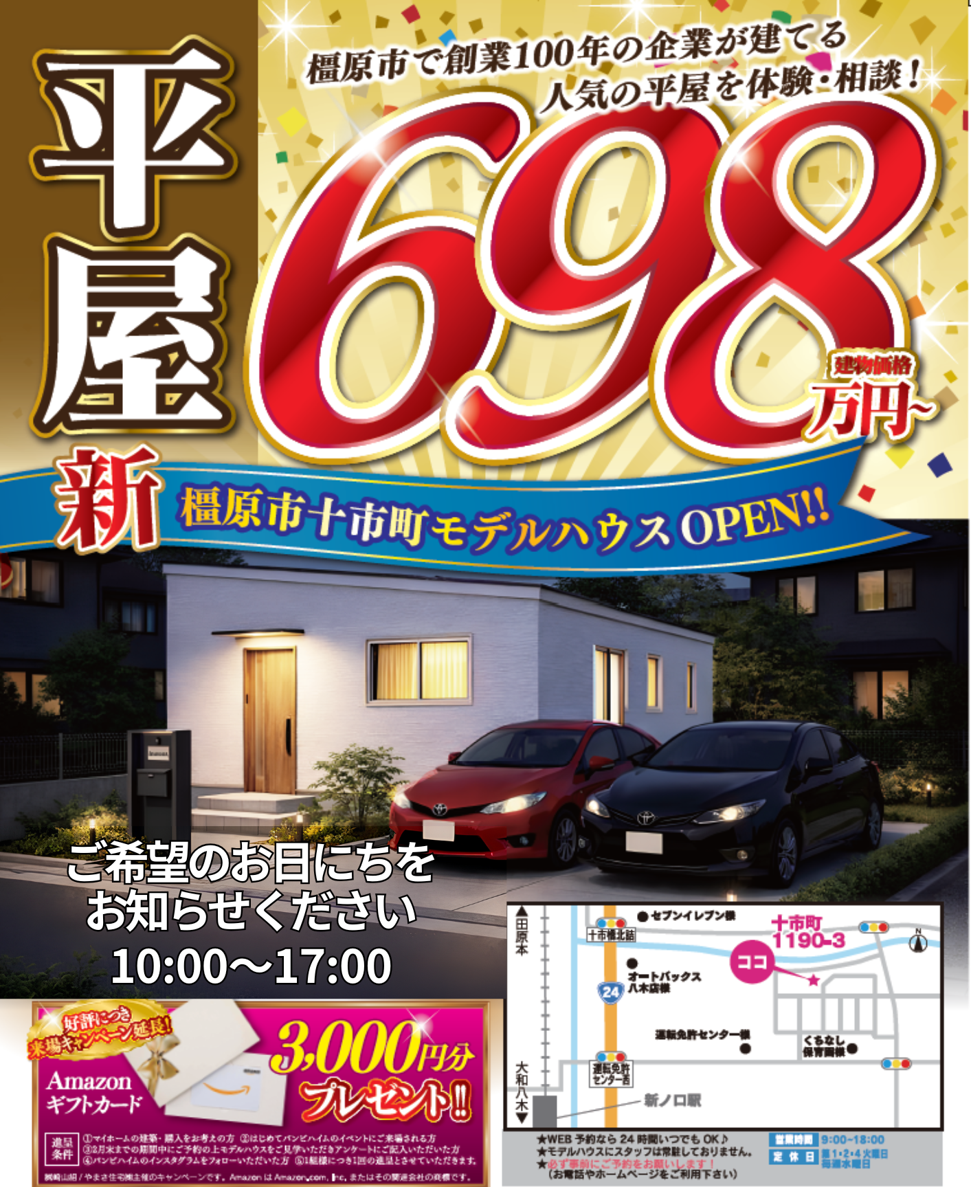 場所:橿原市十市町モデルハウス、大和郡山市西町モデルハウス