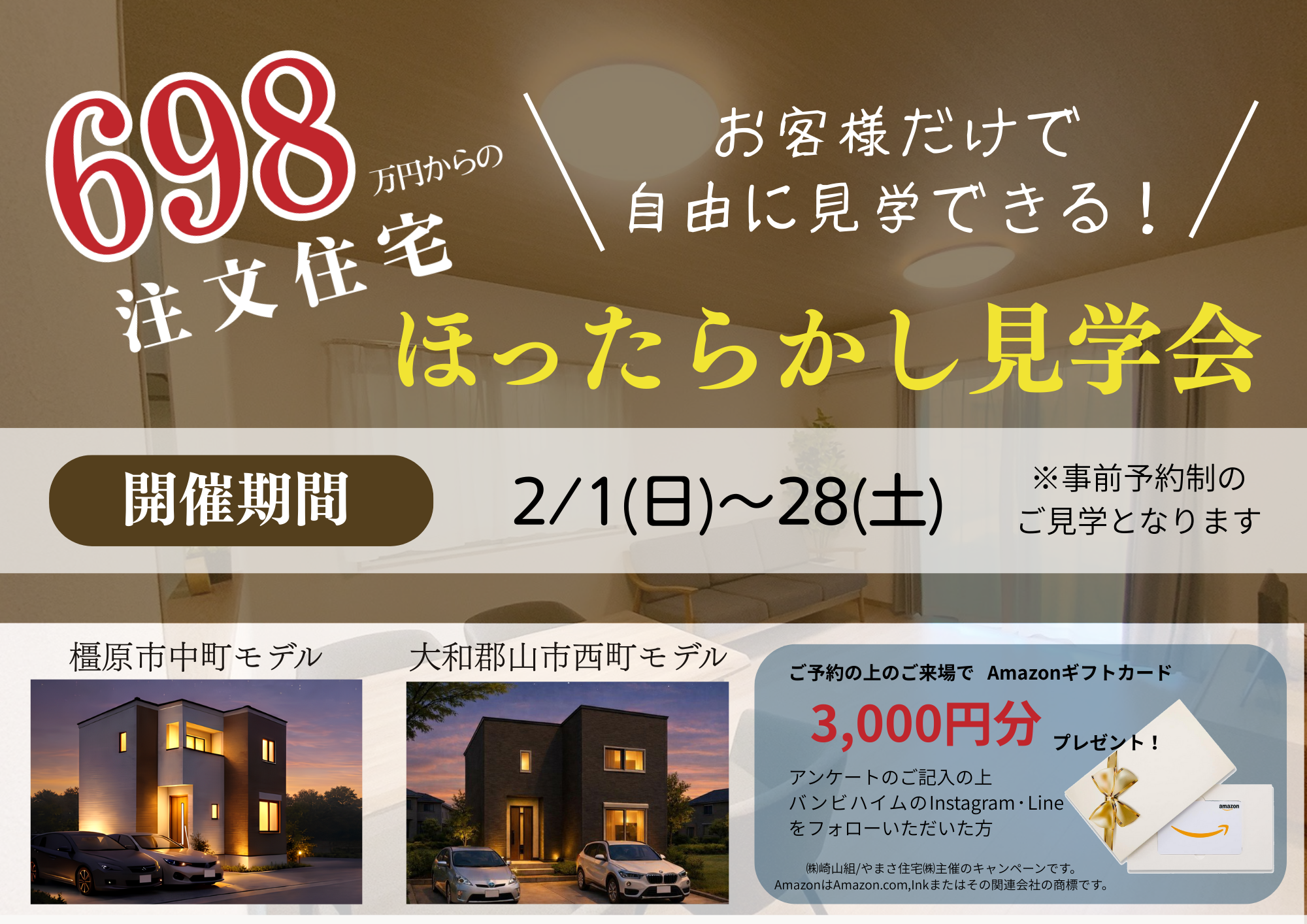 場所:橿原市中町モデルハウス、大和郡山市西町モデルハウス
