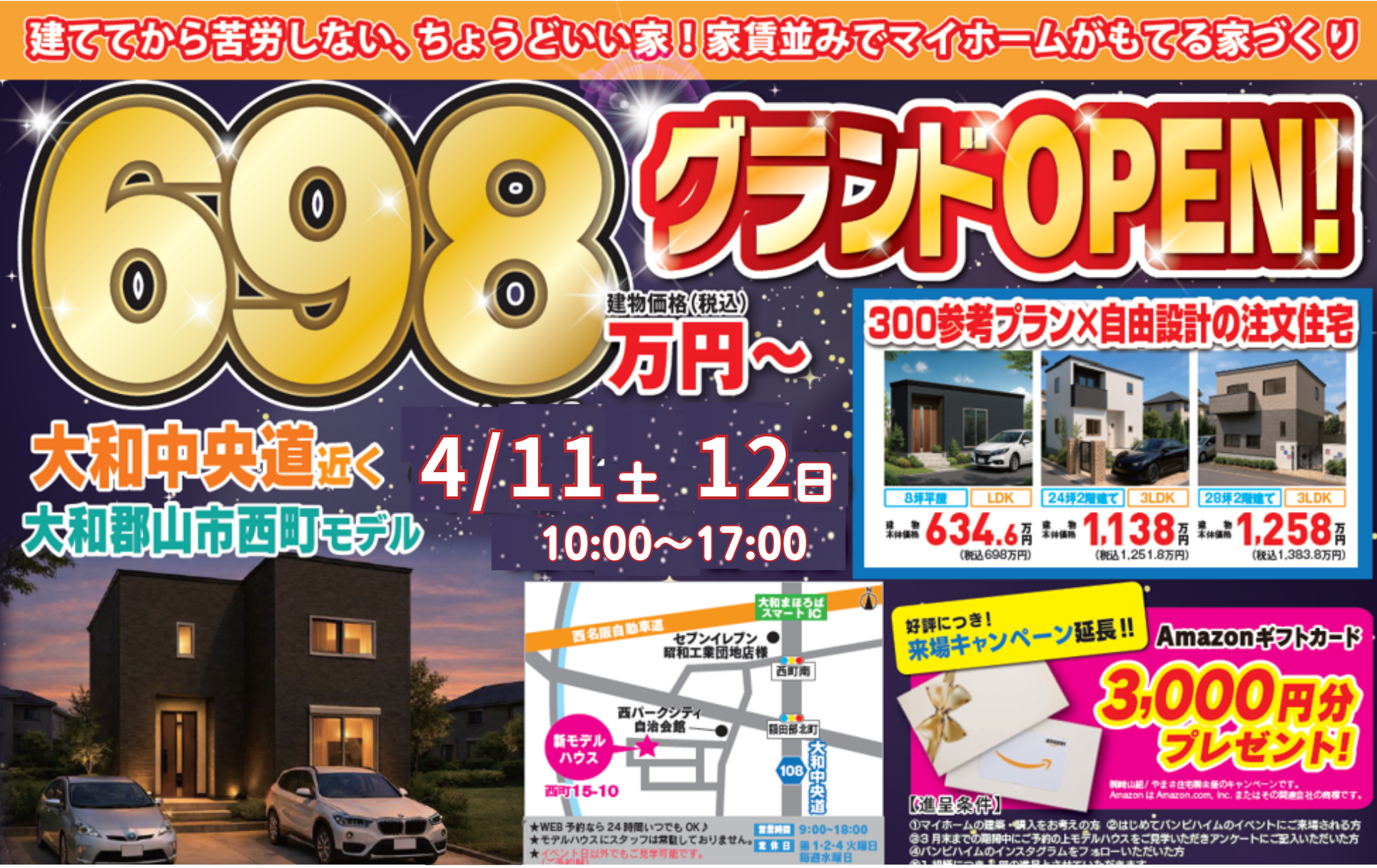 場所:橿原市十市町モデルハウス、大和郡山市西町モデルハウス