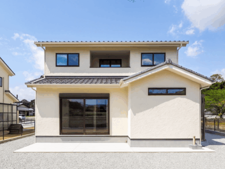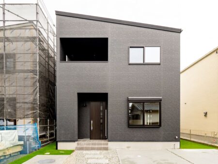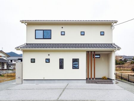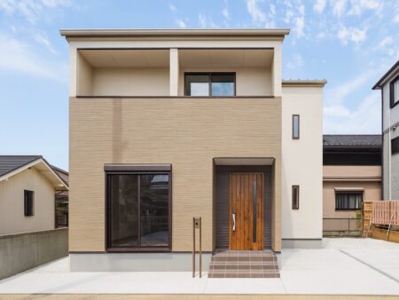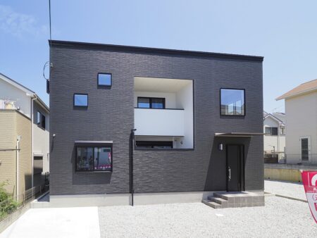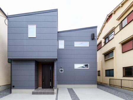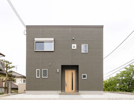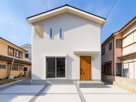 玄関ドア・サッシ・破風・樋をアクセント活用したお家