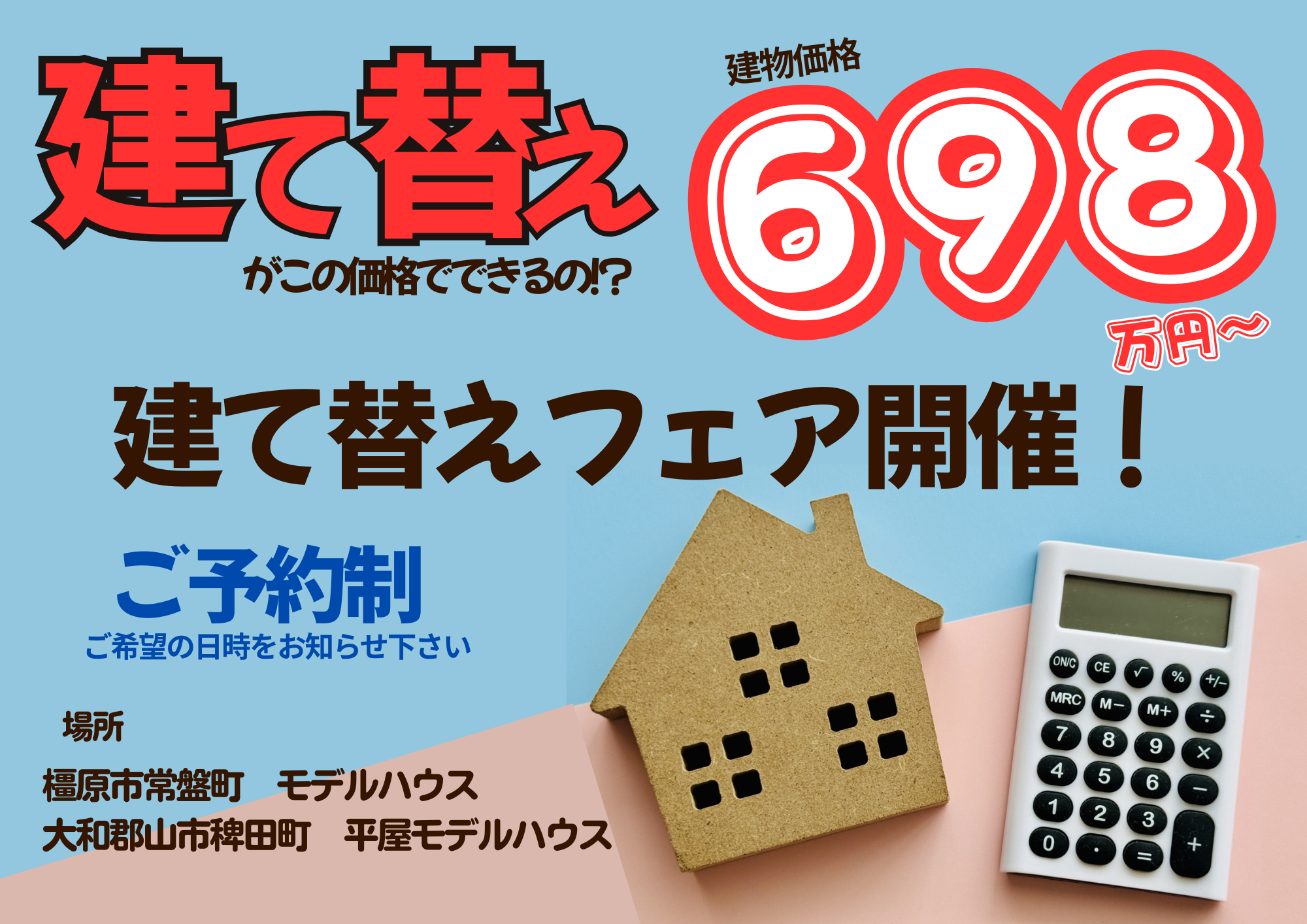 橿原市常盤町モデルハウス、大和郡山市稗田町平屋モデルハウス