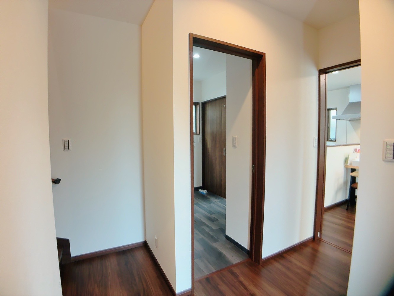 玄関ホールからLDK、洗面脱衣室へと回遊できる家事ラク動線は、